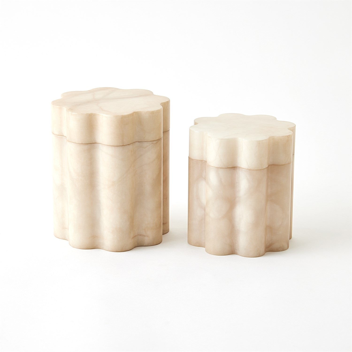The Cumulus Alabaster Boxes are thoroughly handcrafted from the finest Italian alabaster, with each piece undergoing a meticulous staining process to achieve an ivory cream hue. The result is a collection of boxes that provide both beauty and functionality. As alabaster is a natural product, please be aware that there will always be variations in veining and color. This is to be expected and makes every alabaster product uniquely your own.