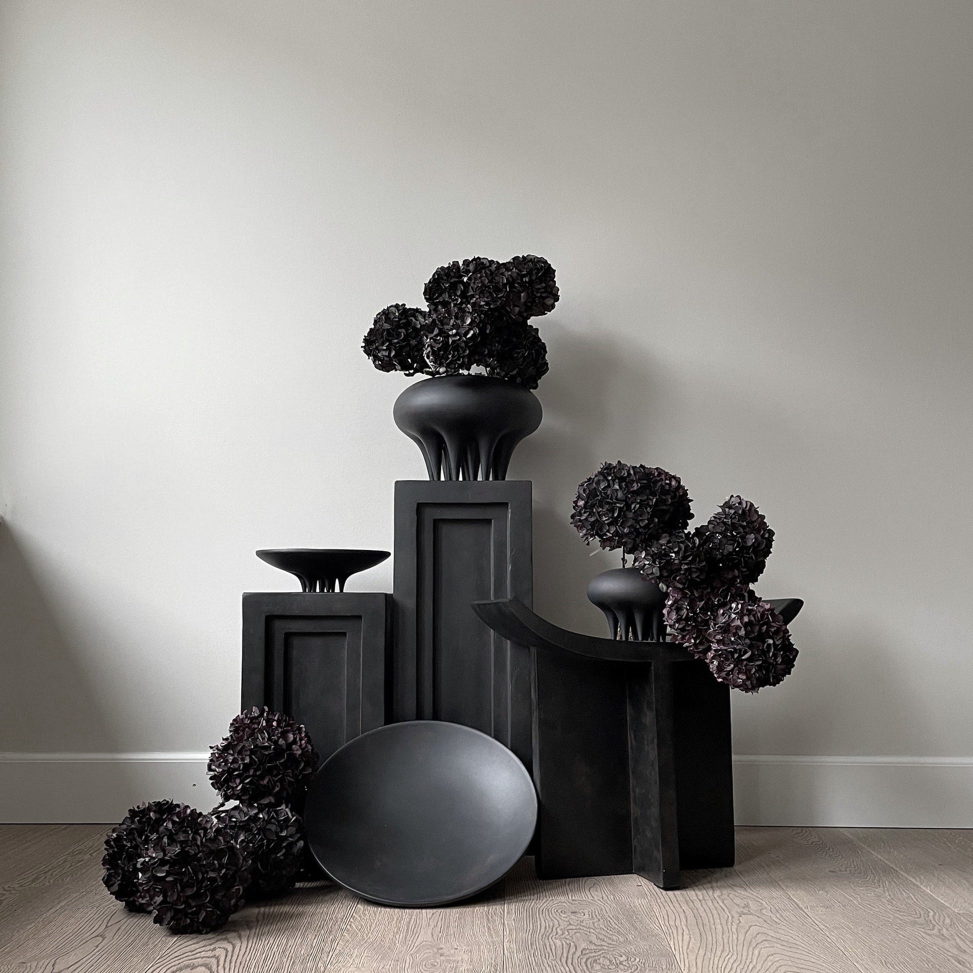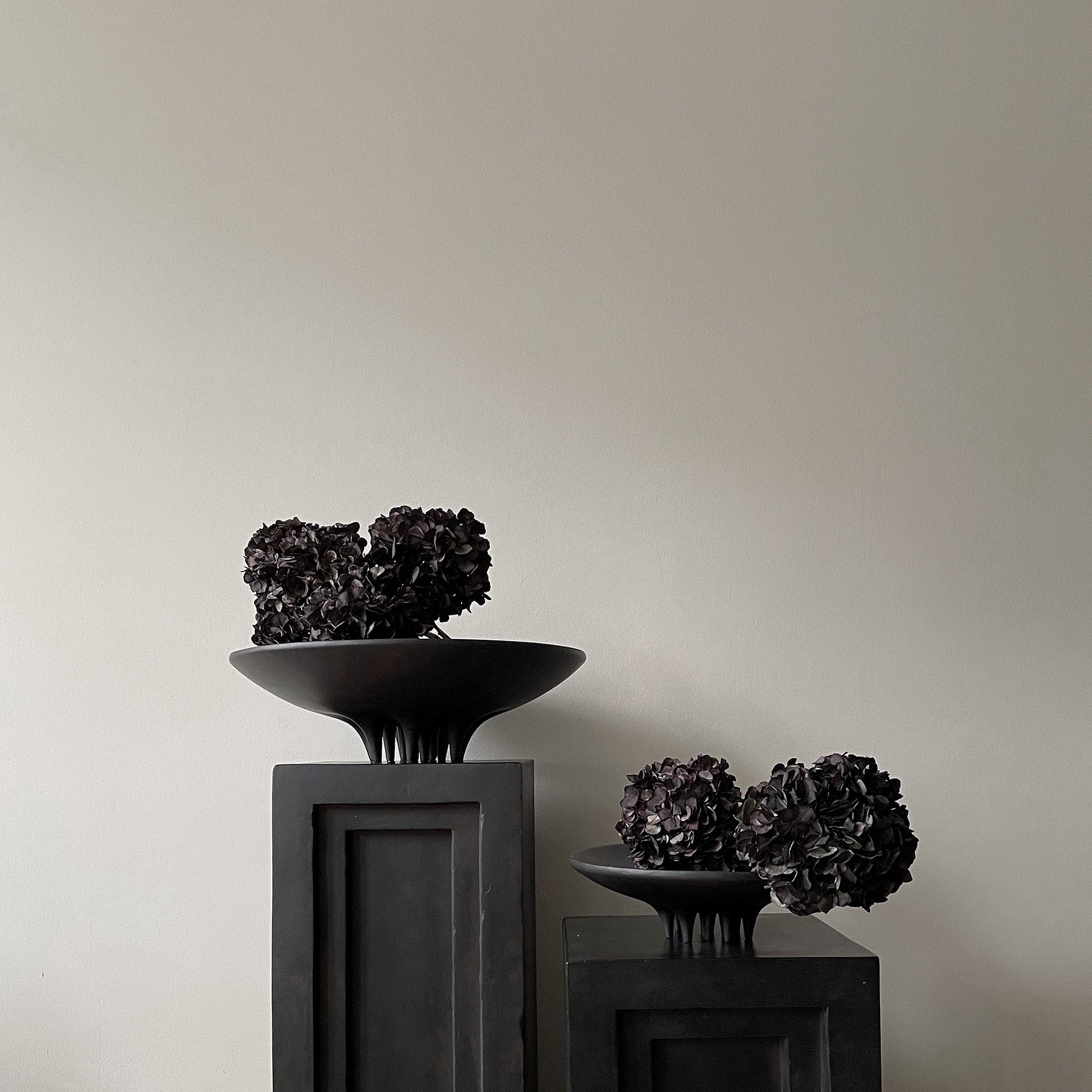 Medusa comes in both vases and trays and is made from ceramic. The surface is hand glazed in order to achieve the unique surface texture. The colours may vary slightly, due to that it is a handmade product. The vase is not 100% waterproof, therefore a bag for fresh flowers is included.
